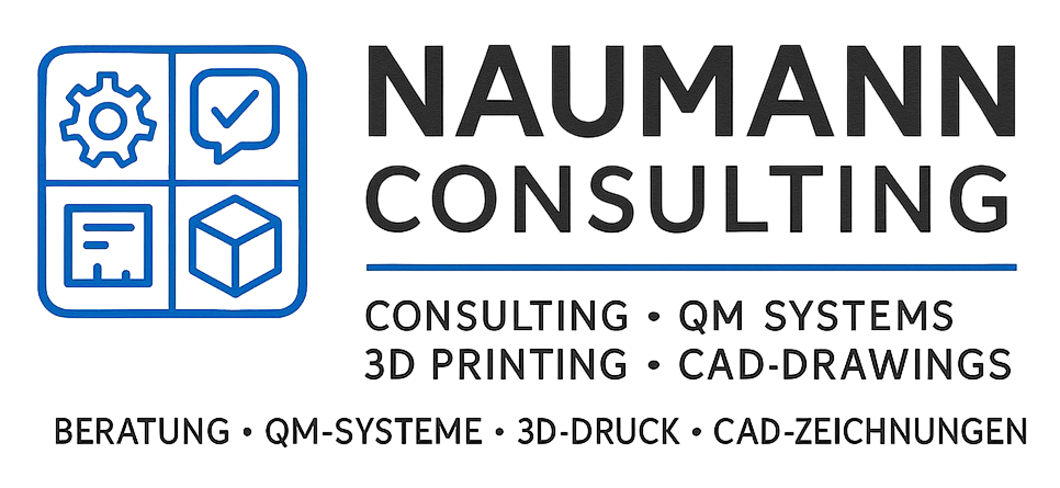Naumann QM-Consulting bietet digitale Beratungsdienstleistungen in den Bereichen Qualitätsmanagement,Arbeitsschutz, Dokumentation und Luftsicherheitsberatung an. Der Fokus liegt auf kleinen und mittlerenUnternehmen (KMU), die praxisnahe, bezahlbare und flexibel verfügbare Unterstützung bei der Einführung, Pflege undWeiterentwicklung normgerechter Strukturen benötigen.Die Leistungen erfolgen ortsunabhängig und vollständig online über Videokonferenzen (Zoom/Teams), E-Mail unddigitale Dokumentationssysteme.Ergänzt wird das Hauptgeschäft durch ein zweites, technisches Standbein im Bereich 3D-Druck undPrototypenfertigung.